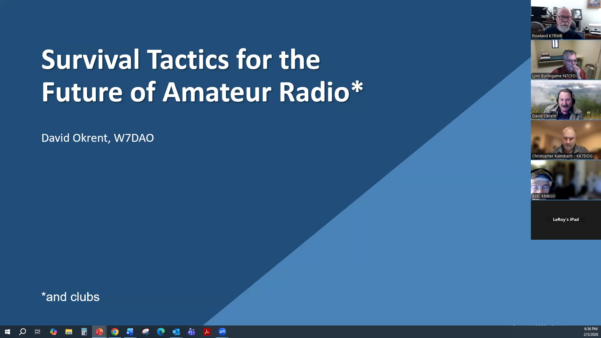 David Okren (W7DAO) presents “Survival Tactics for the Future of Amateur Radio” at the SnoVARC 02-05-2026 Elmer Meeting